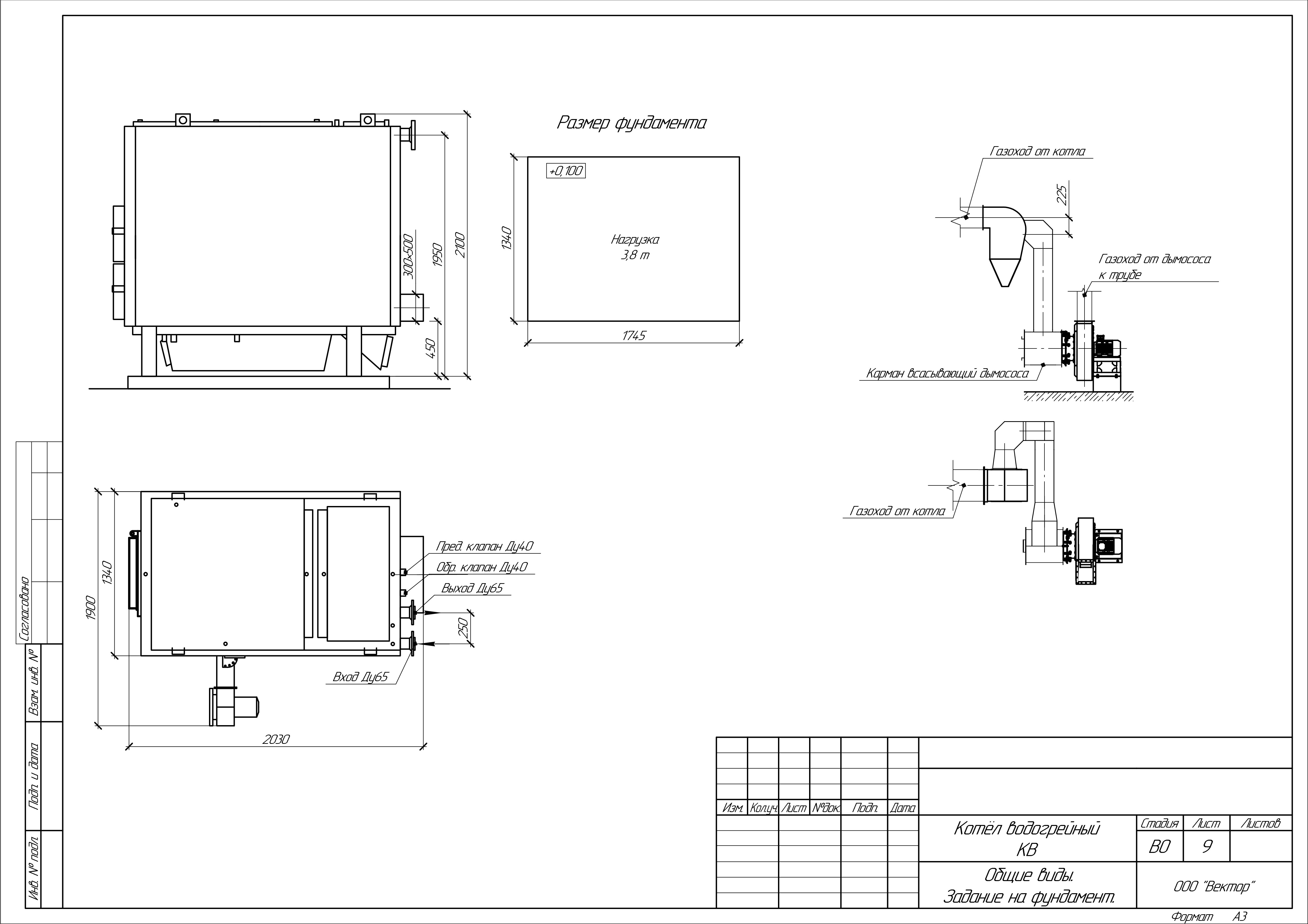 Масса котла (без воды): 2300 кг