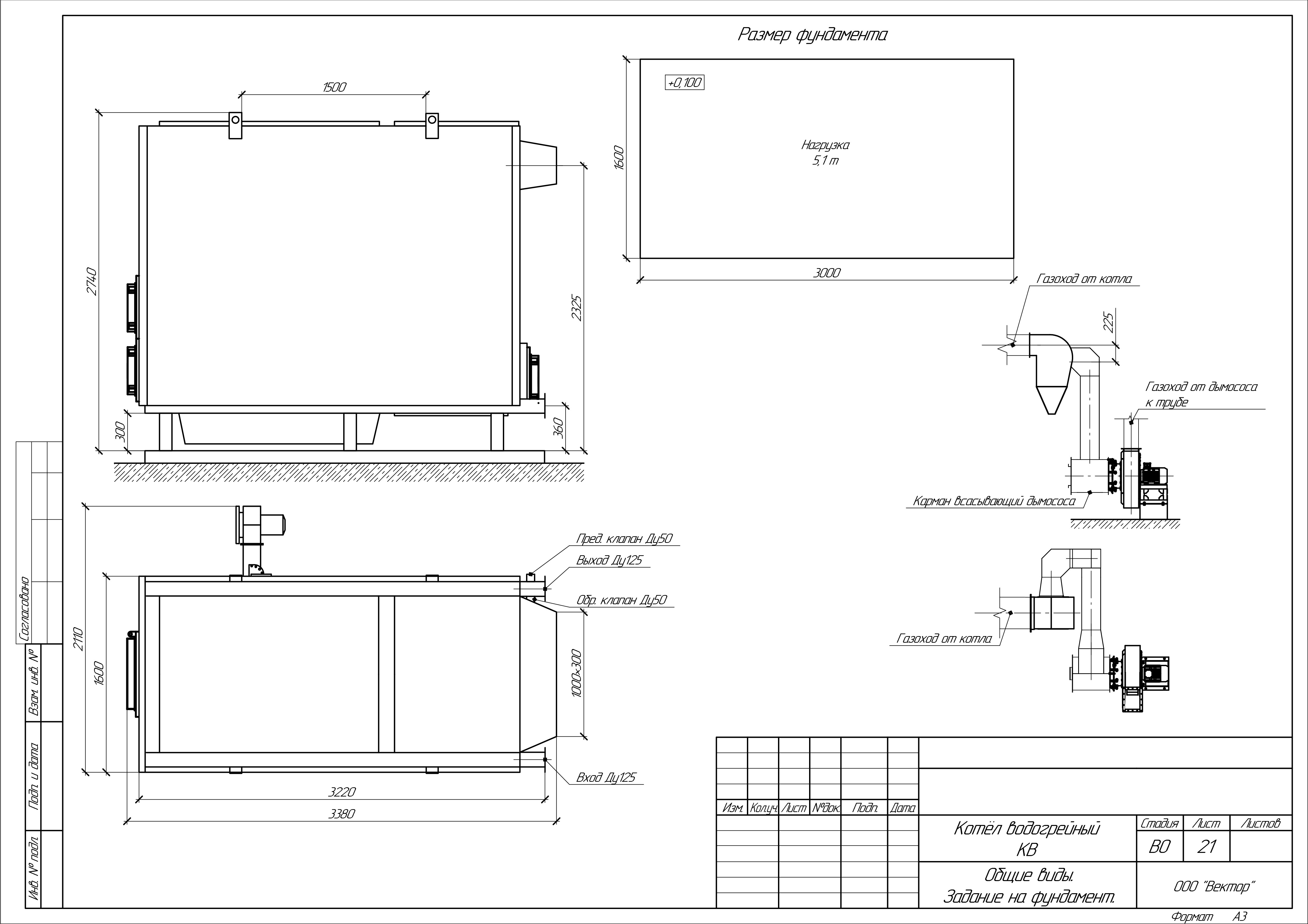 Масса котла (без воды): 3800 кг